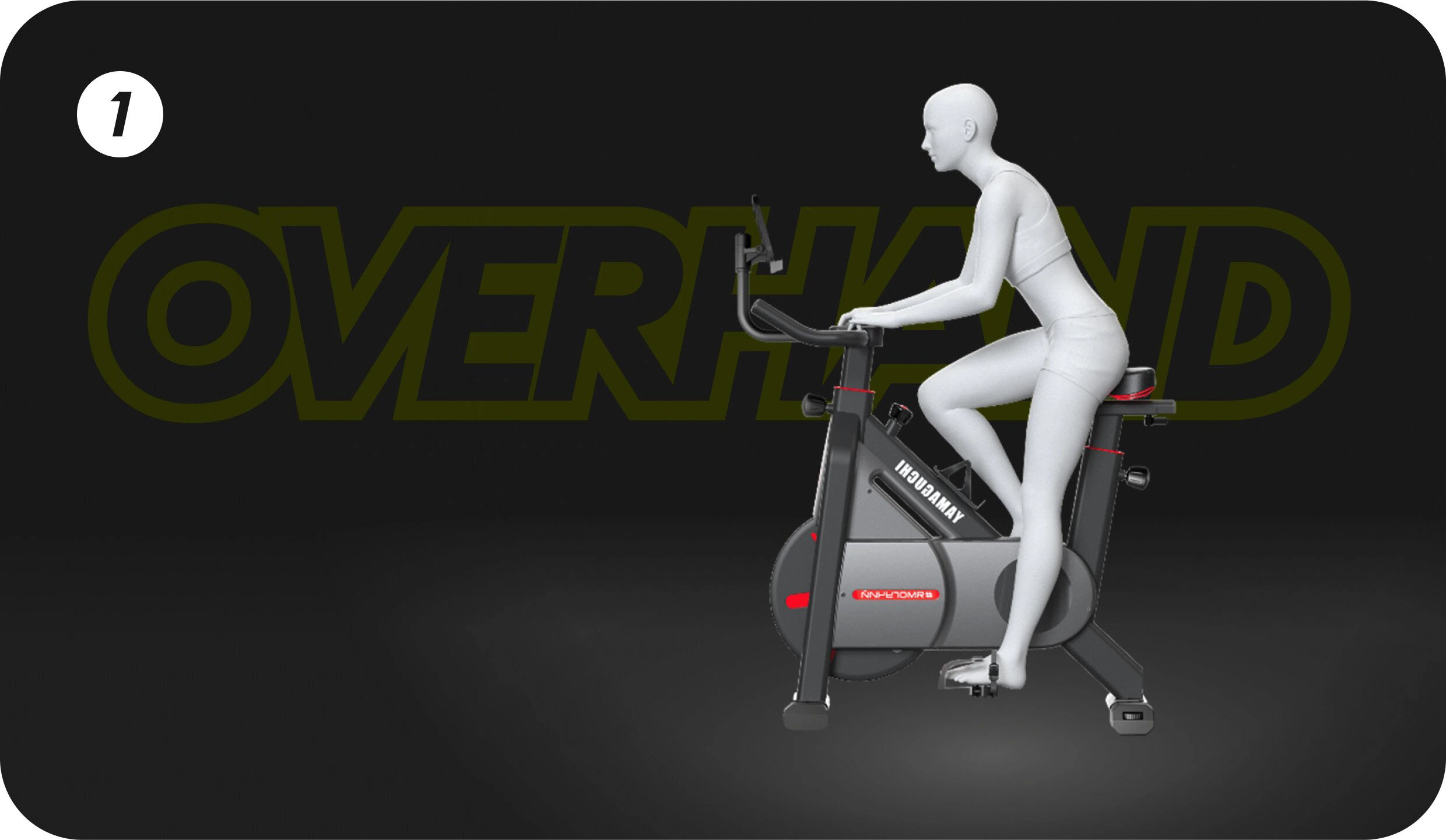 Самый удобный на подъёмах и в спринтерских ускорениях. Тренирует выносливость и силу на высоких уровнях нагрузки. Не следует применять эту разновидность хвата сидя.