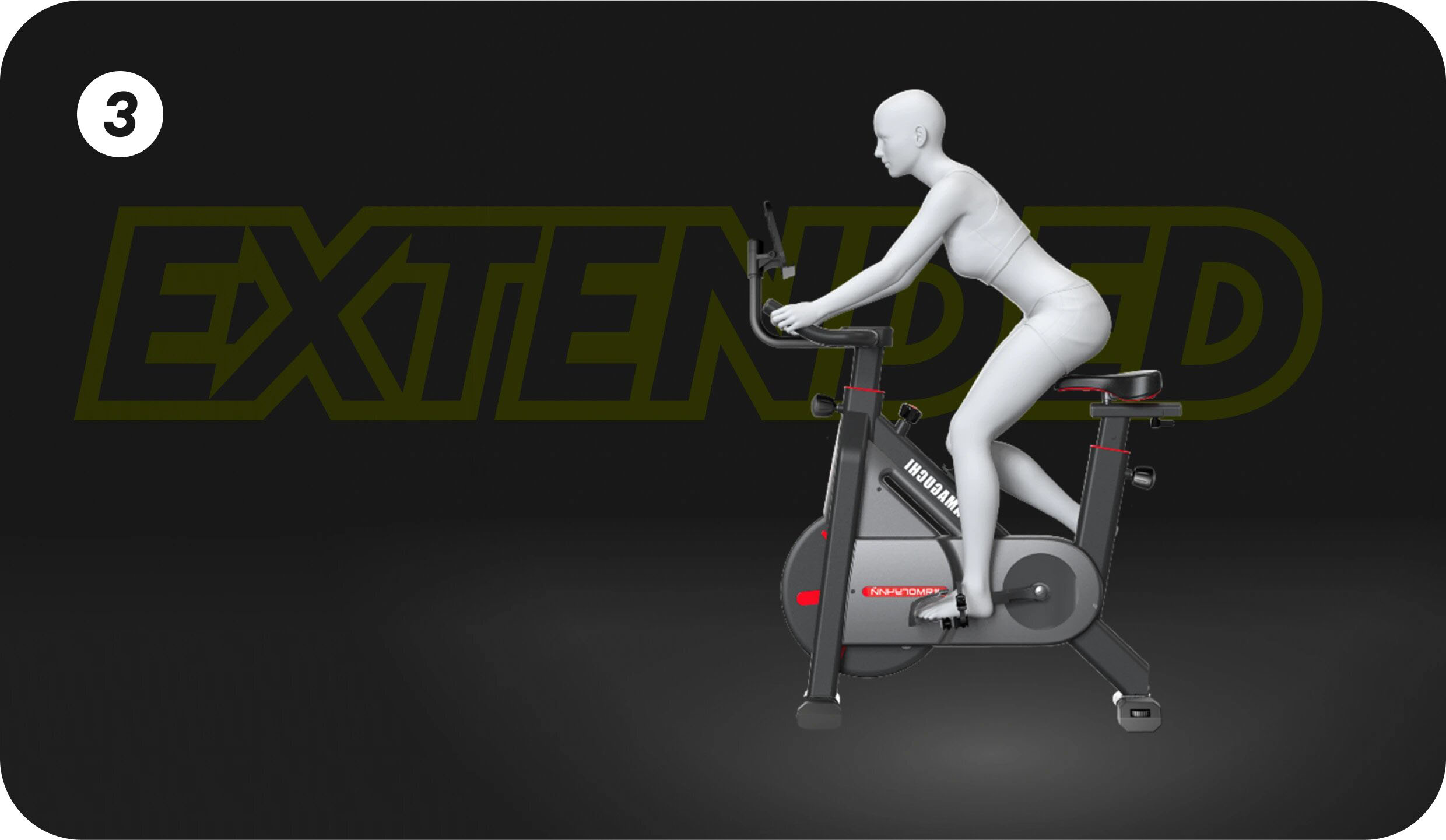 Популярная поза, создающая ощущение безопасности и надёжности. Удобное положение для развития общей силы и выносливости при скоростном педалировании.